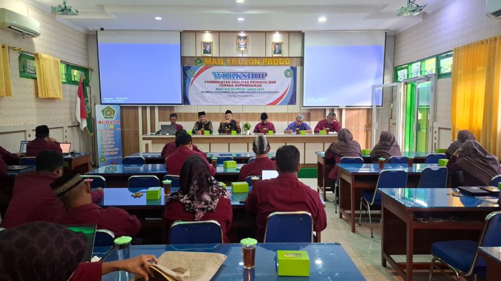 Kulon Progo (MAN1KP) – MAN 1 Kulon Progo kembali menunjukkan komitmennya dalam meningkatkan mutu pendidikan dengan menyelenggarakan Workshop Peningkatan Kualitas Pendidik dan Tenaga Kependidikan, pada Jumat (19/9/2025) di ruang AVA MAN 1 Kulon Progo. Kegiatan ini diikuti oleh seluruh guru dan pegawai, berlangsung dengan penuh khidmat serta antusiasme.