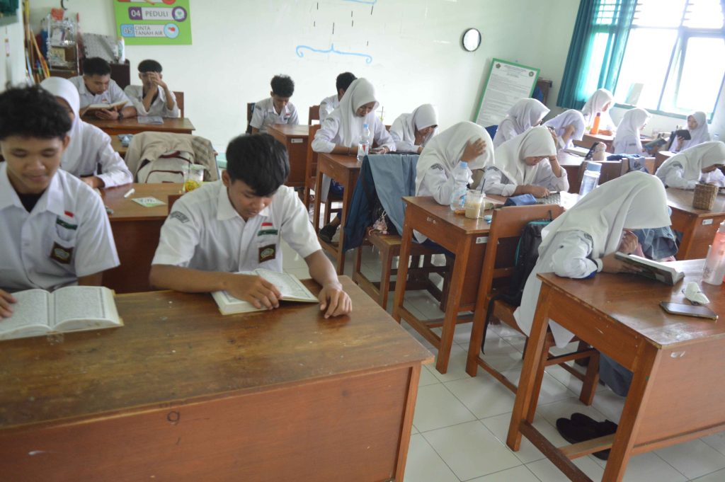 Suasana kegiatan berlangsung khidmat dan penuh makna. Rangkaian acara diawali dengan khatmil Qur’an bersama di masing-masing kelas, kemudian dilanjutkan dengan doa bersama usai pelaksanaan salat Zuhur berjamaah di Masjid Al Huda MAN 1 Kulon Progo.