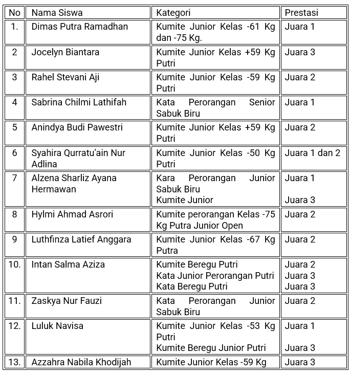 Berikut daftar peraih prestasi dari MAN 1 Kulon Progo dalam Kejurkab Inkanas Kulon Progo 2025: