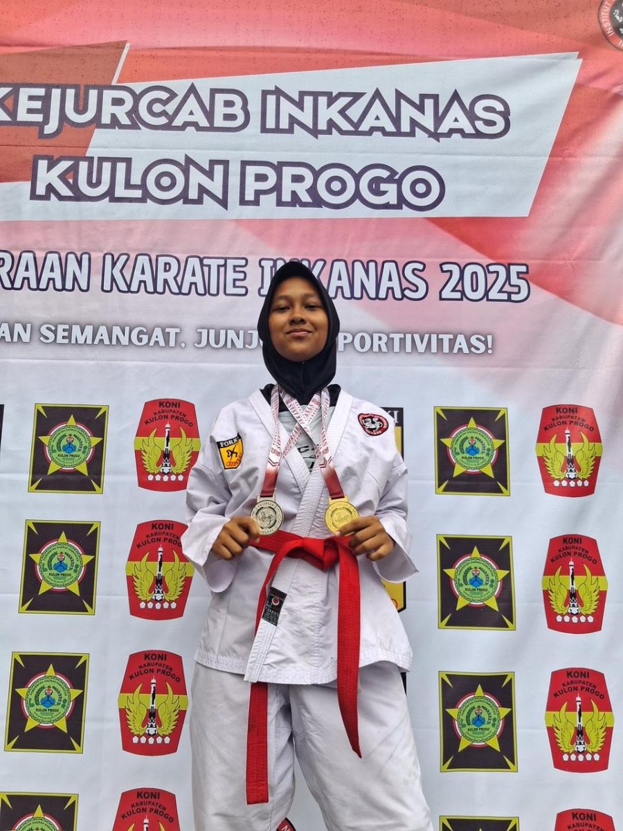 Kulon Progo (MAN 1 KP) — Prestasi membanggakan kembali ditorehkan oleh salah satu siswi MAN 1 Kulon Progo. Pada ajang Kejuaraan Karate Inkanas Kabupaten Kulon Progo Tahun 2025 yang digelar di SMK Negeri 2 Pengasih pada Sabtu (8/11/2025), Syahira Qurratuain Nur Adlina sukses menyabet dua gelar sekaligus, yakni Juara 1 Komite Junior -50 kg Putri dan Juara 2 Komite Junior -50 kg Putri pada dua babak kejuaraan berbeda.