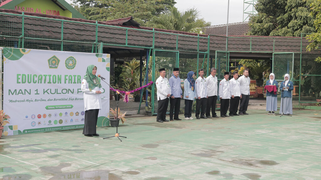Pembukaan Education Fair 2026 dilakukan oleh Kepala Kantor Kementerian Agama Kabupaten Kulon Progo yang diwakili oleh Pengawas Pendidikan Agama Islam, Kalimah, S.Ag., M.A. Kegiatan tersebut dihadiri oleh Plt. Kepala Madrasah, jajaran guru dan tenaga kependidikan, serta ratusan siswa MAN 1 Kulon Progo.